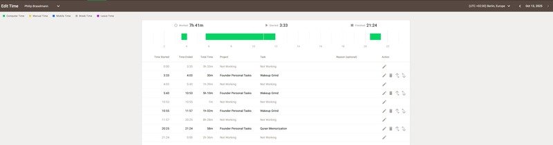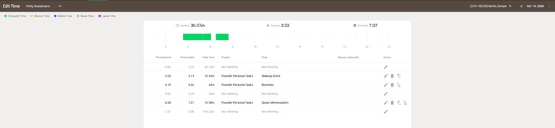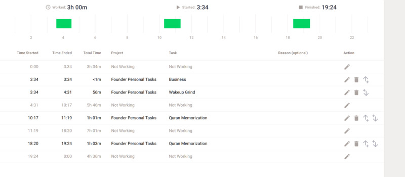In regards to the timedoctor screenshot, I only record critical times like wakeup time and memorization.