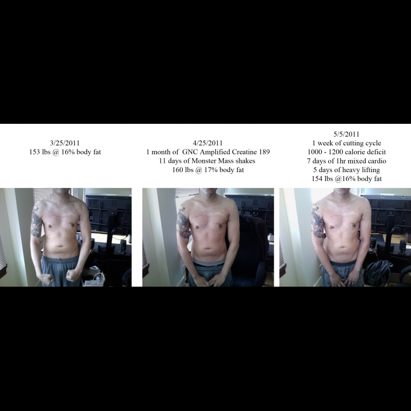 I am at 150 pounds... but.... my body fat reading is at 13% =/ it's going up... but I don't notice it on my body... I am pretty sure it is Visceral fat (internal fat near organs) because my diet has become less healthy in order to reach a calorie surplus. I think my body is going to float normally between 165-185lbs before I reach a peak. Like I was in 2010 but this time less fat and more lean mass. I'm guessing my body will need 4k plus calories daily to breach 185. We will see.. So far I am gaining like crazy, lets see where I plateau.